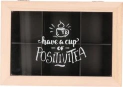 Excellent Houseware Theedoos – Zwart – 6-vaks – MDF – 24 X 16 X 7 Cm