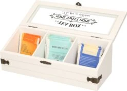 Excellent Houseware Houten Theedoos/theekist Met 3 Vakken – 24 X 9 X 9 Cm – Wit – Theedozen