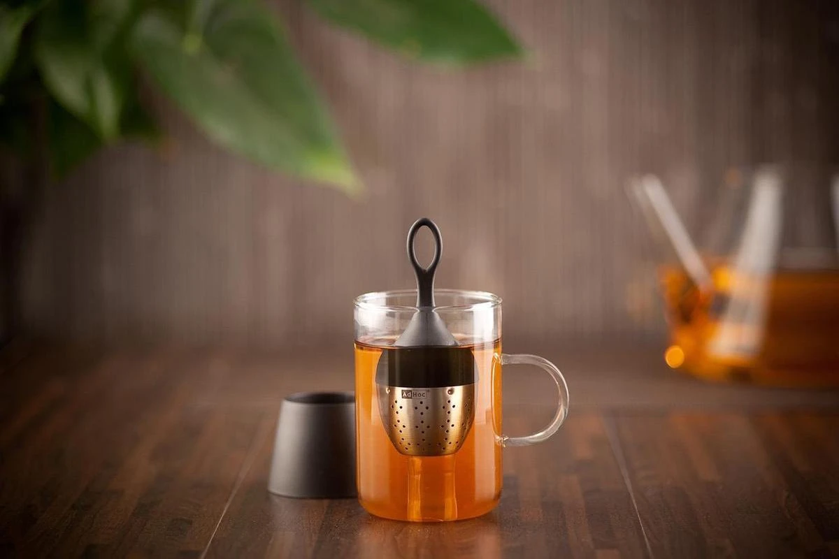 Het werkt heel eenvoudig: vul het ei met thee bladeren, plaats het daarna in je theemok met heet water. Het ei drijft perfect gebalanceerd in het water. Als je thee de gewenste sterkte heeft bereikt, verwijder je het thee-ei door het op te tillen aan de silliconen ring. De bijgeleverde houder vangt de druppels op, zodat je geen last hebt van gemors.