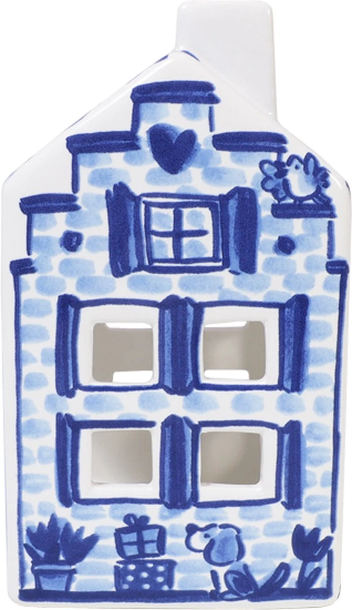 Met onder andere dit schattige theelicht huisje. Er komt sfeervol licht door de raampjes van het huisje. Versier je huis met dit theelicht huisje waar allerlei Hollandse Blond illustraties op staan en de spreuk Oost West Thuis Best!”