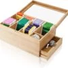 Merkloos Theekist – Bruin – Hout 9-Vaks – Glazen Deksel – Theedoos – Tea Break