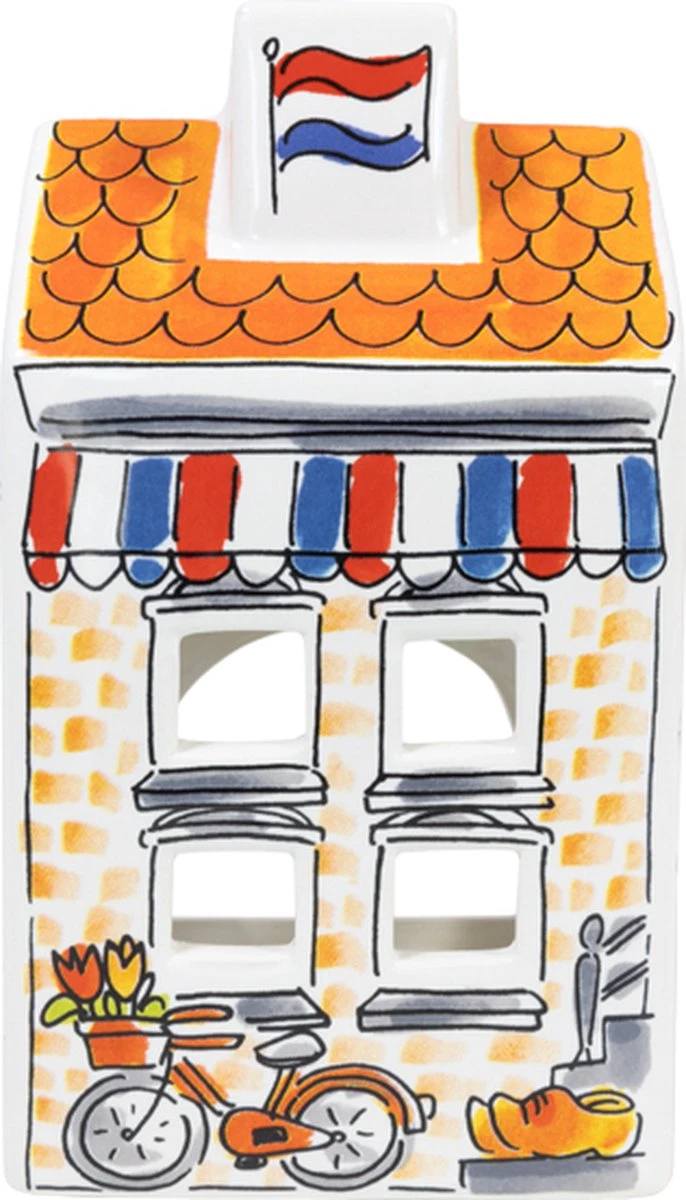 We love Holland! De nieuwe Hollands Glorie lijn van Blond Amsterdam is vormgegeven in frisse rood/wit/blauwe tinten en voorzien van typisch Hollandse illustraties. Dit is een echt ‘Oranje’ lichthuisje met illustraties van grachtenpanden en de tekst ‘Wij houden van Oranje’.