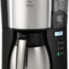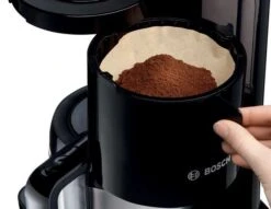 | Overige voordelen | Geïntegreerd ontkalkingssysteem: maakt de ontkalking heel eenvoudig – voor een lange levensduur van het apparaat en uitstekende smaak, afneembaar waterreservoir: simpel en snel direct onder de kraan te vullen, 8/12 kopjes, 1.1 liter, filterhouder draai- en afneembaar (1×4), druppelstop, automatische uitschakeling direct na einde koffiezetproces, Easy storage: snoeropbergruimte voor het eenvoudig en snel opbergen van het snoer, aromasensor voor optimaal koffiezetten ook bij kleine hoeveelheden – bereidingstijd wordt automatisch aangepast. Edelstalen thermoskan: dubbelwandige kan voor een langer plezier van aromatische, hete koffie. |