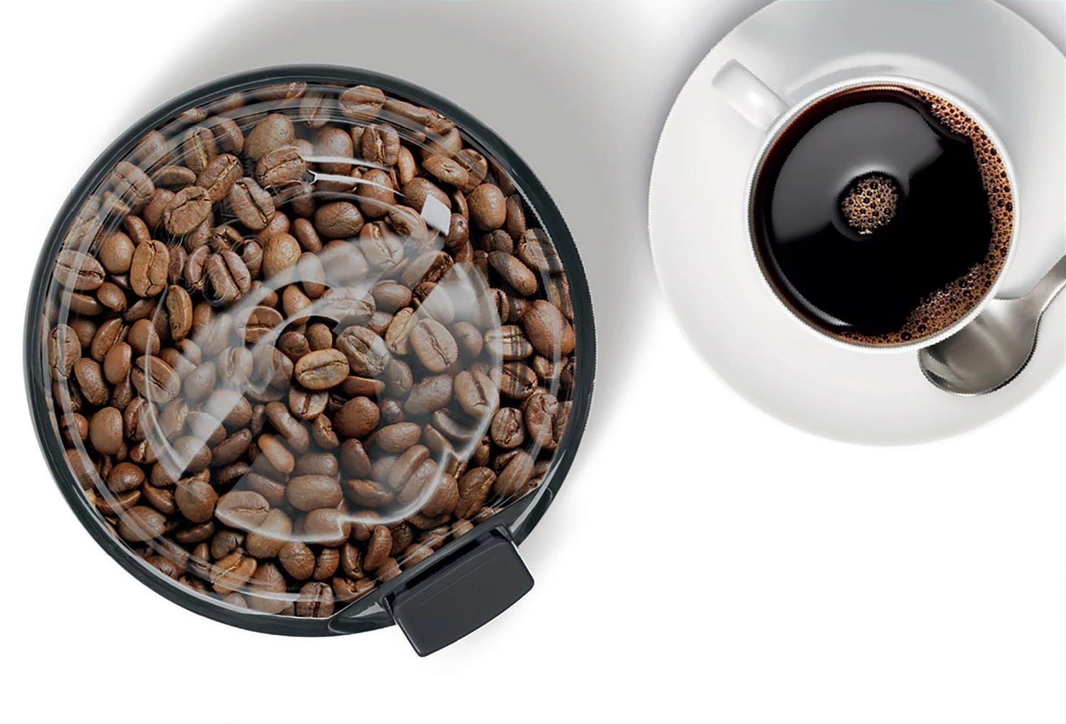 | Top-features | • molen voor 75 g bonen: genoeg voor een hele kan koffie, • veiligheidsfunctie: maalt alleen als de deksel aangebracht en de veiligheidsknop ingedrukt is |