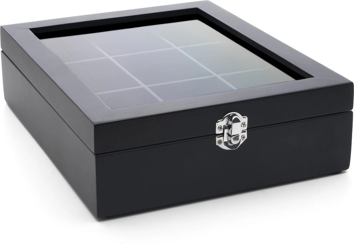 Deze fraaie 9-vaks theedoos uit de Universal collectie van Bredemeijer is voorzien een venster zodat je vanaf de buitenkant snel en gemakkelijk al kunt zien welke smaken er voorhanden zijn. De theedoos is gemaakt van zwart bamboe wat het geheel een chic uiterlijk. De serie universal van Bredemeijer bestaat uit diverse artikelen die het drinken van een kopje thee bijzonder maken. Tevens staan bij alle artikelen van Bredemeijer gebruiksvriendelijkheid, kwaliteit en design voorop.