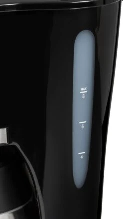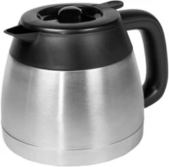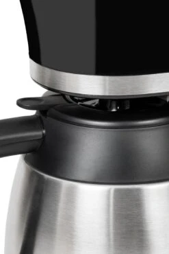 | Overige voordelen | Uitgevoerd met 800 W vermogen en een 1 liter waterreservoir zet hij in korte tijd tot 8 kopjes aromatische filterkoffie voor een alert begin van de dag., De dubbelwandige edelstalen thermoskan houdt de koffie langer heet en geurig., Druppelstop-functie – voorkomt gedruppel op de warmhoudplaat bij het verwijderen van de kan en daardoor zorgt het voor schoon koffiezetten., Felgekleurde aan-uitschakelaar, voor snelle identificatie, als de machine aanstaat. Automatische uitschakeling na bereiding., Het waterpeil kan door het verzonken venster en de opgedrukte schaal op elk moment zonder inspanning afgelezen worden. |