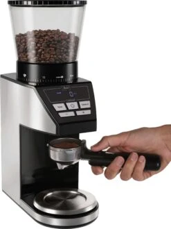 | Top-features | De Calibra® beschikt als een volautomatisch koffiezetapparaat over een robuust kegelmaalwerk van staal. Het malen van espresso, filterkoffie of cafetière is voor deze koffiemolen dus geen punt. |