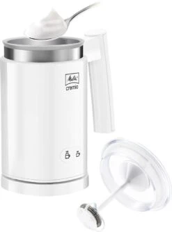| Top-features | De Melitta® Cremio® creëert luchtig melkschuim met één druk op de knop. De capaciteit voor warm of koud melkschuim is 100-150 ml. De Cremio maakt ook van plantaardige melk perfect melkschuim. De capaciteit voor warme melk, bijvoorbeeld voor de bereiding van chocolademelk, is 100-250 ml |