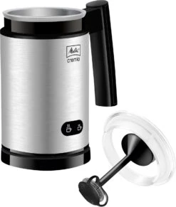 | Top-features | De Melitta® Cremio® creëert luchtig melkschuim met één druk op de knop. De capaciteit voor warm of koud melkschuim is 100-150 ml. De Cremio maakt ook van plantaardige melk perfect melkschuim. De capaciteit voor warme melk, bijvoorbeeld voor de bereiding van chocolademelk, is 100-250 ml |