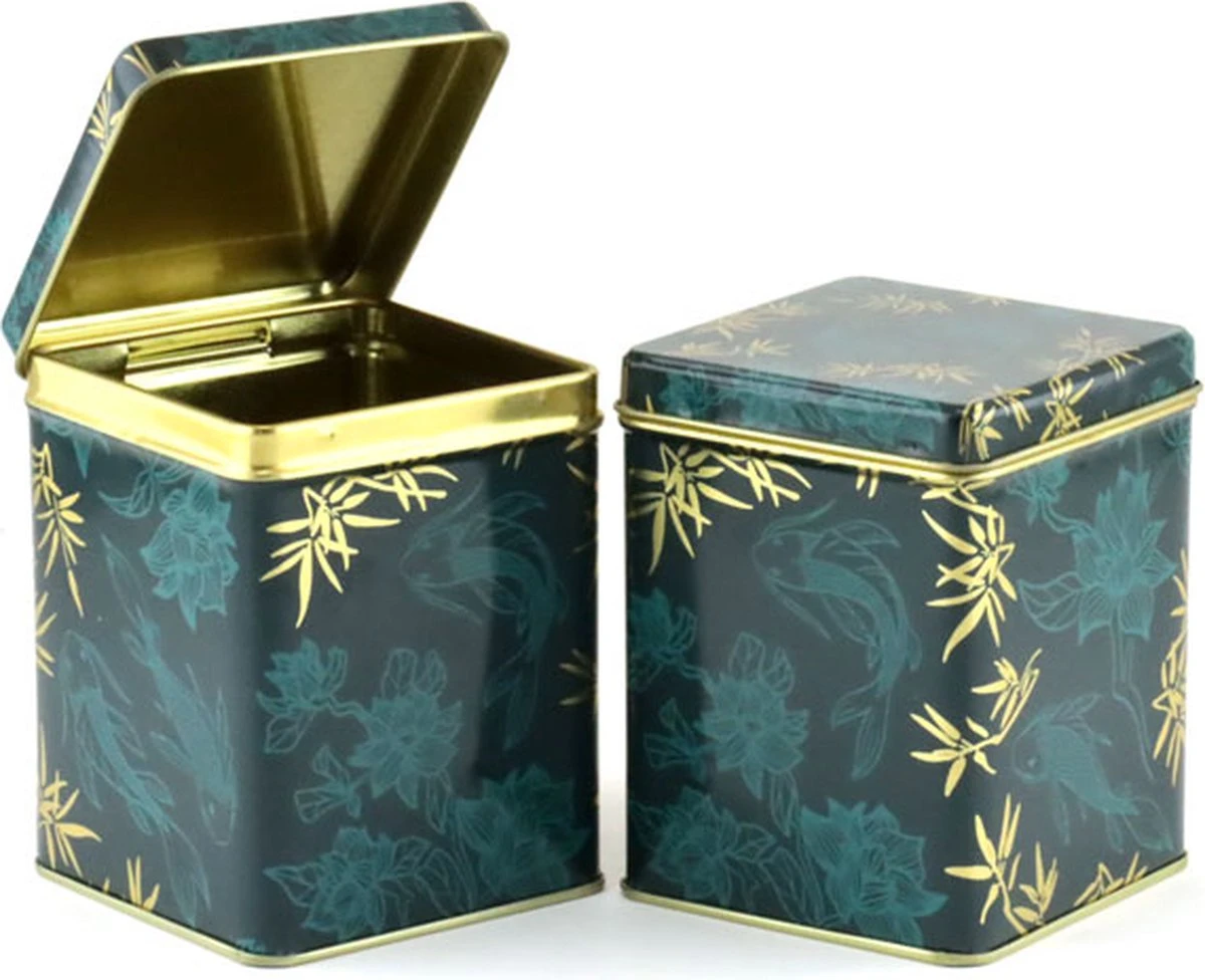 Berg je thee nu op met stijl. Dit donkergroene theeblik met gouden accenten en Koi-vissen is een plezier voor het oog en handig in gebruik. Het aroma en de smaak van de thee blijft in een theeblik voor een lange periode optimaal.