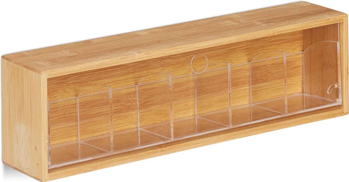 Relaxdays Theedoos 5 Vaks – Theekist – Theezakjeshouder – Bamboe – Voor Ca. 10 Theezakjes