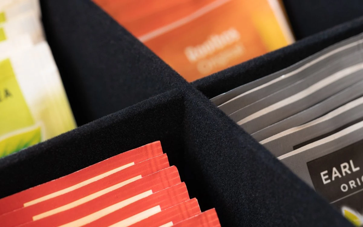 | Verpakkingsinhoud | Theedoos Zwart 9-vaks – met Fluweel – 23 x 23 cm |